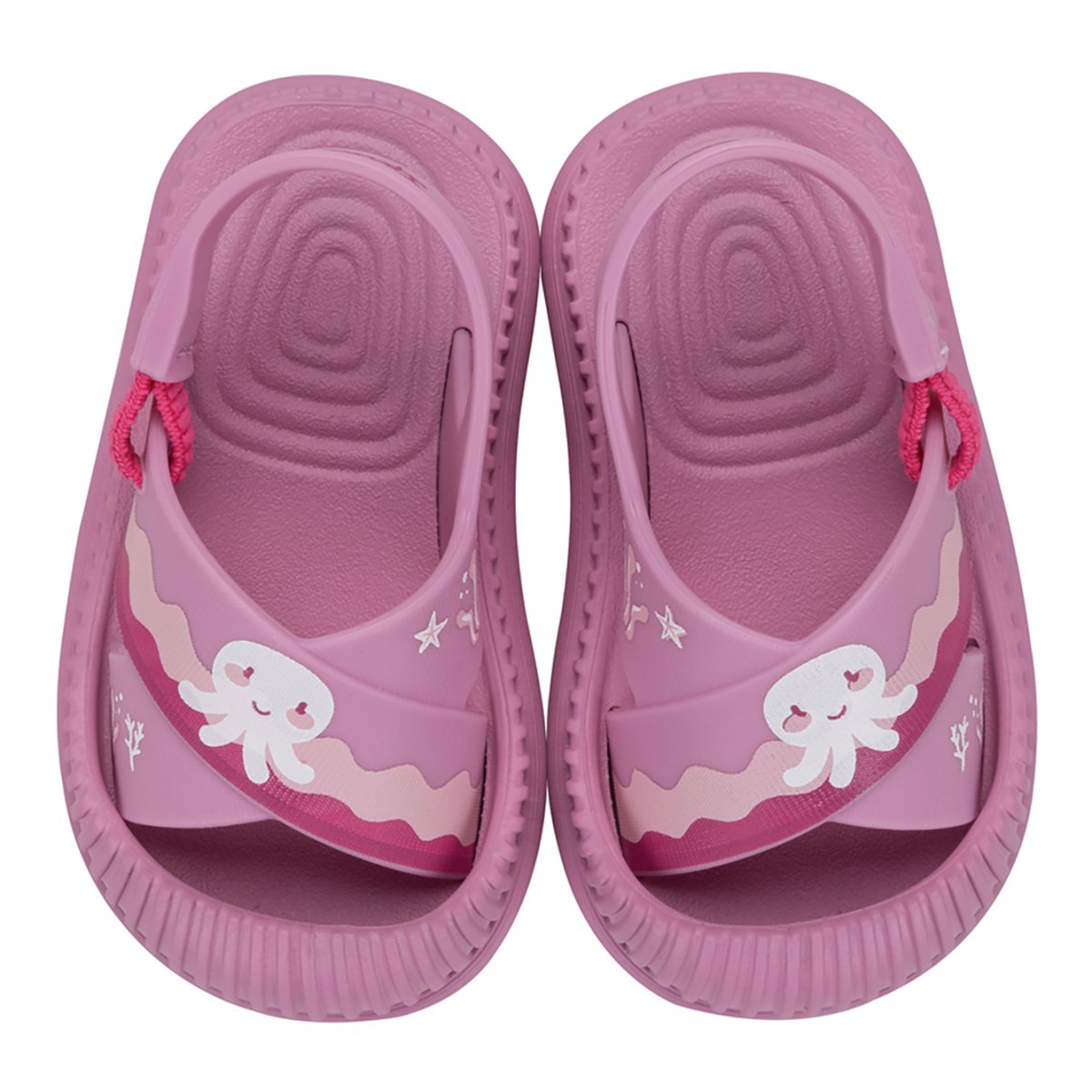 Protezione e comfort sono le caratteristiche distintive di questo bellissimo sandalo. La punta protegge i piedini ed è ideale per farli giocare senza preoccupazioni. La stampa completa questa calzatura con divertenti motivi marini in un'applicazione traslucida, rendendo il sandalo ancora più bello.